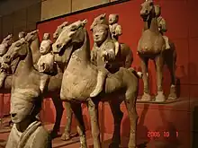 La dynastie Han (chinois simplifié : 汉朝 ; chinois traditionnel : 漢朝 ; pinyin : hàncháo ; chinois archaïque : ŋ̥ānh ḍhaw[1]) règne sur la Chine de 206 av. J.-C. à 220 apr. J.-C. Deuxième des dynasties impériales, elle succède à la dynastie Qin (221 - 206 av. J.-C.) et est suivie de la période des Trois Royaumes (220 - 265). Elle se divise en deux périodes : celle des Han occidentaux (西漢) ou Han antérieurs (前漢) (206 av. J.-C. - 9), capitale Chang'an et celle des Han orientaux (東漢) ou Han postérieurs (後漢), (25 - 220), capitale Luoyang. Ces deux périodes sont séparées par la courte dynastie Xin, fondée par Wang Mang et qui ne survit pas à la mort de ce dernier.