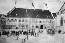 À la suite du compromis austro-hongrois de 1867 et du compromis croato-hongrois de 1868, le Royaume de Croatie-Slavonie est créé, ainsi que le gouvernement du pays, officiellement le gouvernement royal croato-slavono-dalmate (croate : Zemaljska vlada ou Kraljevska hrvatsko-slavonsko-dalmatinska zemaljska vlada) dirigé par un ban nommé par la couronne. L'établissement a lieu sous l'administration du ban Levin Rauch[49],[50]. Cette forme de gouvernement a perduré jusqu'à l'éclatement de l'Autriche-Hongrie et la création du Royaume des Serbes, Croates et Slovènes en 1918. Au total, 15 Bans ont été à la tête du gouvernement pendant cette période[51]. Le gouvernement royal croato-slavono-dalmate n'était pas un gouvernement parlementaire car ses ministres et son chef (ban), n'étaient pas nommés ou confirmés par le Parlement croate (Sabor), mais par le gouvernement hongro-croate à Budapest.