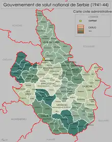 Le régime de Nedić n'hésite pas à se réclamer du roi Pierre II réfugié à Londres : plusieurs généraux de l'ancienne armée royale y participent, de même qu'Aćimović qui reste ministre de l'Intérieur, ainsi que des membres du parti d'extrême droite ZBOR[5]. Nedić, qui n'adhère pas particulièrement aux idées fascistes et semble avoir voulu en premier lieu protéger les Serbes de l'anéantissement physique, adopte une posture que le spécialiste des Balkans Paul Garde compare à celle de Philippe Pétain en France. La première tâche de son gouvernement est de s'occuper des centaines de milliers de réfugiés serbes, arrivés de Croatie et des différentes régions annexées par les occupants[6]. Le pouvoir en Serbie est cependant détenu essentiellement par le gouverneur militaire allemand, poste successivement occupé par Harold Turner (1941–1942), Walter Uppenkamp (1942), Egon Bönner (1942–1943) et Franz Neuhausen (1943–1944). La présence de Nedić est essentiellement destinée à faire accepter l'occupation par la population serbe.
