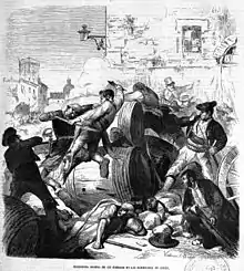 En décembre, à Cadix, le gouverneur militaire déclare l'état de guerre pour faire face à une "succession d'alarmes injustifiées" et ordonne le désarmement des volontaires de la liberté. Les affrontements entre les miliciens, dirigés par Fermín Salvochea, fils d'un riche commerçant, et l'armée ont duré trois jours, l'artillerie étant utilisée de part et d'autre, causant un grand nombre de victimes. Pour mettre fin à la résistance des miliciens, le gouvernement envoie des unités de renfort et ordonne aux navires de l'armada espagnole de bombarder la ville, les obligeant à déposer les armes sans être vaincus. D'autres mouvements similaires ont eu lieu à Béjar, Badajoz, Málaga, Tarragone, Séville et Gandía. À Burgos, en revanche, la révolte a été menée par les partisans de la reine détrônée, qui ont poignardé à mort le nouveau gouverneur civil à la porte de la cathédrale, croyant qu'il avait été nommé parce qu'il allait dépouiller l'Église de ses biens - et non pour les inventorier afin d'empêcher de nouvelles ventes clandestines, comme le gouvernement lui avait ordonné de le faire[14].