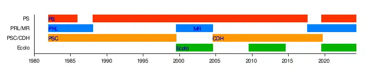 | 5e Législature | Gouvernement Collignon II | - (4 ans et 25 jours) |