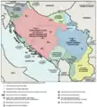 Drljević est quant à lui déporté en Italie ; il rejoint ensuite le territoire de l'État indépendant de Croatie, où il anime sa propre faction monténégrine. Pirzio Biroli, entretemps, décide de jouer des dissensions entre les factions de résistance : il conclut début 1942 des accords avec les chefs tchetniks locaux Bajo Stanišić et Pavle Đurišić. Le général Blažo Đukanović, ancien ban de la Zeta, est quant à lui reconnu par Stanišić et Đurišić comme porte-parole des « nationalistes » locaux. Outre leur accord avec les Tchetniks, les Italiens s'appuient continuent de s'appuyer sur les « Verts » dirigée par Krsto Popović[4].