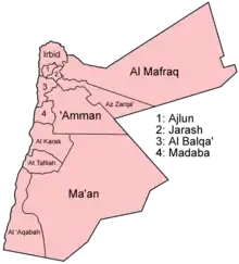La Jordanie est divisée en 12 subdivisions (gouvernorats, en arabe : muhafazat, au singulier muhafazah).