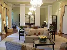 La salle de dessin est utilisée pour recevoir des invités et tenir des réunions. Ses murs et plafonds sont ornés de moulures en plâtre raffinées.
