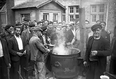 La solidarité peut aussi venir de personnes plus inattendues : elle se tourne alors souvent vers les enfants. La reine mère de Belgique née Élisabeth en Bavière et le couple Joliot-Curie accueillent eux aussi des enfants. Joseph-Jean Heintz, évêque de Metz exprime lui aussi son soutien[26]. Le journal communiste L'Humanité met à chaque fois particulièrement en valeur ces soutiens issus de l'Église : ainsi des appels des évêques de Nice, Paul Rémond, ou de Rodez, Mgr Dubois, ou encore tel ou tel curé appelant au soutien (comme à La Ricamarie) ou faisant une quête en faveur des mineurs, qui vont d'ailleurs au-delà des initiatives individuelles : Témoignage chrétien, le secours populaire des familles ou encore le secours catholique soutiennent les familles des mineurs dans la grève. Les églises protestantes agissent de même[71]. Le maire gaulliste (RPF) de Saint-Étienne, Alexandre de Fraissinette, organise une cantine du soir gratuite pour les enfants de mineurs, jusqu'au [72] ; la mairie d'Aubin (communiste) vote la gratuité des repas aux enfants de grévistes et un don de 250 000 francs dès le . Ces délibérations sont parfois annulées par les services de la préfecture (comme à Viviez ou à Montreuil)[73].