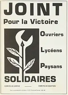 Les leaders paysans justifient cette solidarité de plusieurs façons. Les tracts peuvent affirmer que « Nous n'oublions pas que ce sont nos enfants qui travaillent dans ces usines », et indiquer que les problèmes auxquels doivent faire face les paysans et ces ouvriers sont les mêmes « disparité de salaire », « répression policière », et « « justice » au service du pouvoir »[41]. Le risque de convergence entre ouvriers et paysans est agité quelques semaines plus tard lorsque la grève du lait qui agite le centre-Bretagne voit de nouveau milieux ouvriers et paysans agir de concert. Les responsables politiques locaux de l'UDR y voient alors l'action de « maoïstes » « plus soucieux de ce qui se passe à Pékin que de l'intérêt de la Bretagne »[42].
