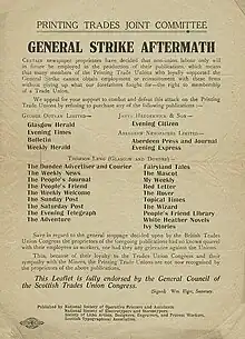Le , le TUC, par la voix d'Ernest Bevin, annonça pour le à minuit un débrayage général en soutien aux mineurs. Entre le 1er et le , d'ultimes tentatives de négociations entre gouvernement, syndicats et patronat ne débouchèrent sur aucun accord, du fait de la tension sociale et de l'intransigeance des deux parties en conflit[10]. Les antagonismes de classes étaient alors très puissants : les ouvriers étaient tout aussi déterminés au combat que les cercles patronaux et conservateurs qui tenaient à « donner une leçon aux trade-unions, voire à les briser »[11]. La tension n'était pas limitée au secteur des mines : par exemple, à la dernière minute avant l'impression de l'édition du du Daily Mail, les ouvriers imprimeurs refusèrent de publier un éditorial hostile à la grève générale intitulé For King and Country (« Pour le roi et pour le pays »), dans la mesure où on pouvait y lire qu'« une grève générale n'est pas un conflit confiné à un secteur de l'industrie mais représente une menace pour le gouvernement et l'État de droit »[N 2].