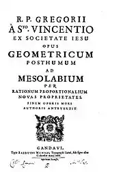 Grégoire de Saint-Vincent, né le à Bruges, comté de Flandre, (Pays-Bas catholiques) et décédé le à Gand, était un jésuite, mathématicien et géomètre flamand, surtout connu pour le calcul de l'aire comprise entre un segment de droite et un arc d'hyperbole, qu'il relia au logarithme de la longueur du segment.