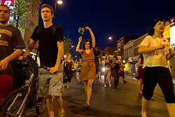 La grève étudiante québécoise de 2012 ou printemps érable (par calembour avec « printemps arabe ») désigne l'ensemble des événements, mouvement sociaux et perturbations induits par une grève étudiante générale et illimitée dans les établissements d'enseignement supérieur québécois du au . Cette grève étudiante, la plus longue et la plus imposante de l'histoire du Québec et du Canada[6],[7], est une réponse à l'augmentation projetée des droits de scolarité universitaires pour la période 2012 à 2017 dans le budget provincial 2012-2013 du gouvernement du Parti libéral de Jean Charest. L'élection du gouvernement péquiste de Pauline Marois, le , et l'annulation par décret de la hausse des droits de scolarité entraînent de facto la cessation du conflit.
