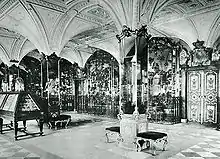 - Salle des armoiries (Wappenzimmer) : armoiries en cuivre et vermeil des provinces de Saxe; armoiries de Pologne.