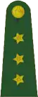 | Mareşal | Orgeneral | Korgeneral | Tümgeneral | Tuğgeneral | Albay | Yarbay | Binbaşı | Yüzbaşı | Üsteğmen | Teğmen | Asteğmen | Öğrenci | |