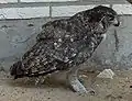 C'est un hibou de taille moyenne, l'un des plus petits grands-ducs. Sa longueur est de quarante-cinq cm et son poids varie de 480 à 850g. Il a une envergure de 100 - 140 cm[1]. Le disque facial va du blanc cassé à l'ocre pâle et les yeux sont de couleur jaune. Il a des touffes sur les oreilles et le haut du corps est brun sombre, les parties inférieures blanc cassé avec des lignes brunes.