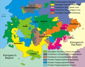 - Parfois aussi appelé grand-duché de Saxe-Weimar : en effet, au XIXe siècle, il y avait un royaume de Saxe, un grand-duché de Saxe (Saxe-Weimar), et trois duchés de Saxe (Saxe-Meiningen, Saxe-Altenbourg et Saxe-Cobourg-Gotha).