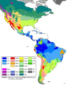 La reconstruction de la végétation d'Amérique centrale au moment du dernier maximum glaciaire (18 000 ans avant le présent) reflète un climat nettement plus froid qu'aujourd'hui, avec des températures de surface de 4 à 7 °C plus basses, et une des couvertures forestières probablement plus ouvertes, en raison des niveaux plus faibles de CO2 atmosphérique et de précipitations moindres (de 30% à 50%)[51]. On observait aussi du côté des Caraïbes une zone côtière plus étendue qu'aujourd'hui grâce à l'abaissement du niveau de la mer consécutif à la mobilisation des eaux dans les calottes glaciaires[52]. Ces conditions semblent avoir perduré jusqu'à 10 500 ans avant le présent et les forêts tropicales de basses terres qui couvrent désormais le pont terrestre entre les deux Amériques ne seraient apparues qu'après cette période. Les mammifères adaptés à la savane ont donc pu bénéficier le long des côtes de l'Amérique centrale des habitats secs et ouverts nécessaires à leur dispersion durant la majeure partie du Pléistocène[51].