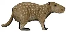 Sur le continent, les rongeurs connaissent un succès fulgurant, au détriment des petits marsupiaux herbivores, et se diversifient rapidement en une multitude d'espèces. Au fil du temps, ils évoluent vers des formes plus grandes qui concurrencent certains des ongulés endémiques et contribuent peut-être à la disparition de plusieurs de ces derniers après le début de l'Oligocène. Au Pliocène, certains rongeurs sud-américains comme Josephoartigasia atteignent des tailles de l'ordre de 1 500 kg[38]. Regroupés aujourd'hui dans le micro-ordre des Caviomorpha, les représentants actuels forment quatre clades bien différenciés : Cavioidea (agoutis, pacas, pacaranas, cobayes, maras, capybaras, etc.), Erethizontoidea (porcs-épics du Nouveau Monde), Chinchilloidea (chinchillas, viscaches et rats-chinchillas) et Octodontoidea (octodons, rats à peigne, rats épineux, ragondins, hutias, etc.)[36].