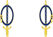 En plus de son écu montrant ses armes, le grand écuyer de France porte, de chaque côté une épée d'or, avec fourreau et baudrier semé de France.