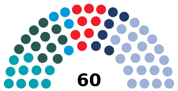 - Résultat comparé à celui, cumulé, des partis Gauche démocrate et socialiste et Mouvement civique 10 au dernier scrutin, soit 21,38% et 24 sièges.