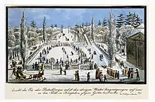 L'hiver une patinoire, une rampe de glissade et des courses de patinage sont organisées à partir de 1819 à l'initiative du prince Poutiatine. Une école de fructiculture est ouverte[3], les pavillons sont loués l'été, le commerce de bois est institué, le tout donnant une nouvelle attractivité au lieu dans l'esprit de rentabilité du « caméralisme ». Vers 1830, l'allée centrale qui mène au palais est supprimée, ainsi que les aménagements antérieurs, sans toucher à la structure du plan. Le palais sert à diverses expositions, comme celles organisées par la Société des horticulteurs Flora ou par l'Union royale médiévale de Saxe.
