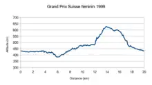 Le circuit est long de vingt kilomètres et doit être parcouru six fois. Il comporte une unique mais difficile montée longue de deux kilomètres pour un dénivelé positif de 145 mètres. Les deux derniers kilomètres sont plats. Au total, le parcours a un dénivelé positif de 1 458 mètres[1].
