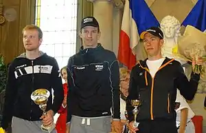 | Joeri Calleeuw ({{2e}}), Dimitri Claeys ({{1er}}) et Stan Godrie ({{3e}}). | |||