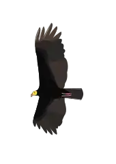 Le Grand Urubu mesure de 64 à 75 cm de long, pour une envergure de 166 à 178 cm et une queue longue de 25 à 29 cm[2]. Son poids moyen est de 1,65 kg[3]. Son plumage est noir avec des reflets verts ou violets. La gorge et les côtés de la tête sont dépourvus de plumes. La peau mise à nu est de couleur jaune à orange pâle, avec la calotte bleue[4]. La nuque et le contour des narines sont rose pâle. Les couvertures sous-alaires sont noires, tandis que les rémiges ont une nuance plus claire. L'axe des onze rémiges primaires semble être de couleur blanche, vu de dessus[5]. La queue est arrondie et longue pour un vautour, s'étendant jusqu'à la pointe de l'aile repliée, ou plus loin encore. Il n'y a pas de dimorphisme sexuel apparent[6]. La tête est gris terne chez les jeunes qui, autrement, ressemblent aux adultes.