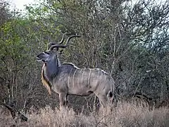 Le Grand koudou (Tragelaphus strepsiceros) est une espèce de mammifères africain de la famille des bovidés. Cette grande antilope vit essentiellement dans les régions montagneuses du Tchad jusqu'au Soudan et, à basse altitude, de l'Afrique de l'Est à l'Afrique du Sud.