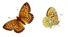 - Speyeria aglaja lyauteyi (Oberthür, 1920) — le Grand nacré berbère — au Maroc.