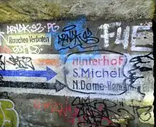 - Le bunker allemand. Situé sous le lycée Montaigne, il s'agit de l'abri aménagé par l'armée d'occupation en 1941 à des fins de défense passive. Accessible uniquement par des chatières (espaces étroits), le bunker possède une atmosphère toute particulière en raison des renforcements qui recouvrent les murs, mélange de meulière et de béton projeté, qui côtoient des maçonneries et fronts de taille plus anciens. On peut y trouver de nombreuses traces de l'usage militaire du lieu, telles que des restes d'installation électrique, des flèches indiquant les sorties et les entrées, ainsi que des toilettes chimiques[37].