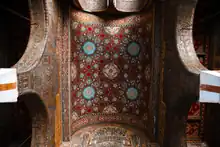 La décoration est une mosaïque datant du VIIIe siècle. Il s'agit d'une œuvre byzantine. On y lit deux thèmes :