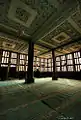 L'intérieur est décoré de superbes arabesques et de versets coraniques réalisés en bas-relief et d'ornements géométriques et de calligraphies qui également ornent les deux immenses coupoles surmontant la salle principale de prière[7],[3].