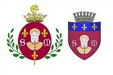 L’insigne se porte à gauche sur la poitrine et peut être, sans distinction, la cocarde aux couleurs de la compagnie à deux pendants frangés d’or où apparaissent les lettres S et M, ou un écusson émaillé représentant le buste de saint Martial entouré des lettres gothiques S et M. Les premier et second bayles portent autour du cou une croix marquée des armes de la confrérie qui sont celles, anciennement du consulat, aujourd’hui de Limoges. S’ils portent la cocarde, celle-là est ornée sur les pendants de motifs de lauriers et de chêne d’or pour le Premier bayle, d’agent pour le Second bayle.