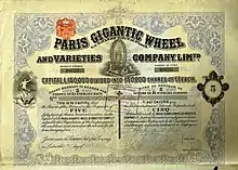 La grande roue de Paris fut conçue et gérée par une société par actions anglaise, Paris Gigantic Wheel and Variety Company Ltd[2]. Pour financer la construction de l'attraction, la société émet des actions. Son exploitation n'a jamais été suffisamment bénéficiaire pour distribuer des dividendes[3]. Théodore Vienne, industriel et fondateur de la course cycliste Paris-Roubaix, était à la fois propriétaire et directeur de la grande roue de Paris[4]. Située au coin de l'avenue de Suffren et de la rue Dupleix, elle comportait 40 nacelles de treize mètres de long en forme de wagons, pouvant transporter chacune 30 personnes. Une rotation complète durait vingt minutes. Huit nacelles étaient simultanément disponibles lors de chaque arrêt. La roue se meut grâce à une machine à vapeur d'une puissance de 120 chevaux[1].