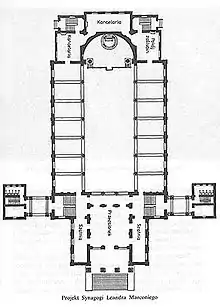 Parmi les projets proposés en compétition, celui de Jan Kacper Heurich et celui de Jerzy Vöckla présentaient des bâtiments de style mauresque. Ils ne furent jamais rendus publics et n'ont pas été conservés[3]. Le projet de Heurich, classé premier a été caractérisé comme « juif » : « [...] fronton de très bon goût, couronné en son milieu d'un dôme, encadré de chaque côté par deux tours élancées. », tandis que celui de Vöckla, classé sixième[3]: « [...] même s'il n'est pas retenu, est considéré par tous comme le meilleur. Il n'a pas pu être accepté uniquement en raison de son coût qui dépasse considérablement les possibilités financières de la communauté. »[3].