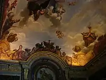 - Le plafond décoré par François Lemoyne entre 1733 et 1736. Nommé l'Apothéose d’Hercule il représente Junon, Jupiter, Hébé, les Muses, Apollon et Héraclès. Cette fresque comprend 142 personnages et fut tellement admirée à son inauguration qu’elle valut à son auteur le titre de premier peintre du Roi. Mais Lemoyne, épuisé par son travail, se suicida peu après en se perçant de neuf coups d’épée.