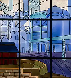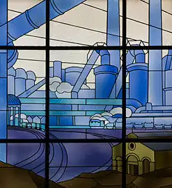 - « ensemble de 27 verrières : le Travail dans la sidérurgie Lorraine », notice no PM54000496, sur la plateforme ouverte du patrimoine, base Palissy, ministère français de la Culture.