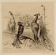 La défense et la promotion du métier d’illustrateur menées par J.-J. Grandville est également marquée par sa lutte pour la protection de ses droits d’auteur. Dans Les Métamorphoses du Jour (Bulla, 1929), Grandville s’en prend aux plagiaires de son œuvres, représentés sous forme d’oiseaux copiant les gravures de l’ouvrage[15]. En 1842, un différend oppose Grandville à l’éditeur Jules Hetzel et à son rival en illustration, Tony Johannot. Grandville les accuse d’avoir volé ses idées en éditant Le voyage où il vous plaira (Hetzel, 1843), ce à quoi Johannot répond qu’il ne s’agit que d’une coïncidence. Philippe Kaenel apporte une justification d’ordre juridique aux revendications de l’illustrateur. Il distingue deux droits : pécuniaire et moral. Ce dernier repose sur la Loi des 19 et 24 juillet 1793, qui affirme : « De toutes les propriétés, la moins susceptible de contestation [...] c'est, sans contredit, celle des productions du génie[16]. »