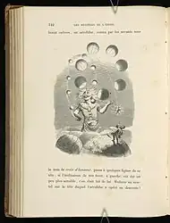 Un autre monde est un livre illustré paru en 1844. D’abord publié sous forme de livraisons hebdomadaires du 18 février au 11 novembre 1843 (36 livraisons vendues 50 centimes l’unité), il paraît sous la forme d’un livre de 296 pages en janvier 1844. Imprimé par le libraire-éditeur Henri Fournier sur papier vélin fort, il contient 220 gravures conçues par Grandville, ainsi qu’un texte écrit par Taxile Delord[27].