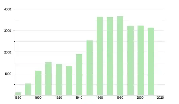 | 1970 | 3 636 | ▼ −0,16 % | |