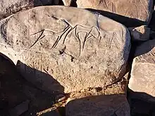 D'autres sites de la même région montrent parfois des gravures de cavaliers à cheval, sensiblement plus récentes, qui pourraient dater du IIe ou du Ier millénaire av. J.-C.