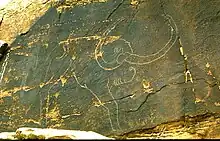 El Khotara, découverte en 1897 est proche de la source, à l'est, appelée « Aïn Khotara » (deux petits rhinocéros, trois mammifères indéterminés et une autruche de médiocre facture, un petit personnage linéaire d'époque libyco-berbère).