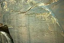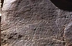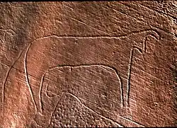 D'autres gravures représentent un bovidé, un rhinocéros, une antilope, un fauve, une autruche.