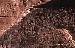 Garet Samouta (36): à environ une demi-heure de marche à l'ouest de la Garet et-Tâleb, un groupe de gravures de qualité inférieure côtoie un autre de la période dite libyco-berbère.