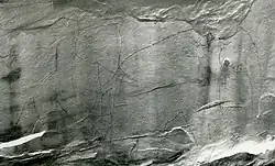 Lhote rapporte qu'une longue tranchée ouverte au pied de la gravure n'a donné aucune indication sur le procédé de polissage et l'outillage utilisé.