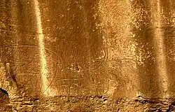 On rencontre encore sur le site un autre animal mythique plus petit et moins bien conservé, un bovidé à trompe associé à un archer en trait poli-miroir, qui peut passer inaperçu mais apparaît plus lisible sous certains éclairages, des bubales et des autruches.