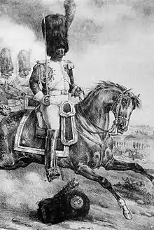 Le , deux régiments provisoires de la cavalerie de la Garde sont renvoyés en Espagne, chacun d'eux comptant dans ses rangs un escadron de grenadiers à cheval. Par la suite ne subsiste qu'un seul escadron, rattaché au 2e régiment provisoire et commandé par Antoine Rémy. En 1811, il comprend 192 cavaliers et sert près de Valladolid[37]. Les grenadiers à cheval servent notamment sous Bessières dans le nord-ouest du pays, où celui-ci est censé soutenir l'armée du maréchal Masséna au Portugal. Ce dernier y combat le général Wellington mais il n'est pas en mesure de percer les lignes fortifiées de Torres Vedras et se retire à Almeida[36].
