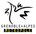 Le logotype de Grenoble-Alpes Métropole est composé d'un dessin d'oiseau et d'une cartouche typographique (sur un fond jaune, couleur de la métropole). « L'oiseau forme les contours géographiques de l'agglomération : |