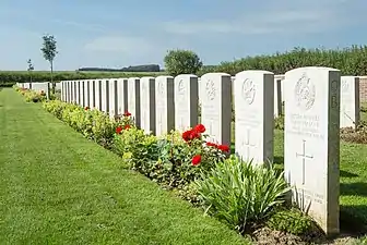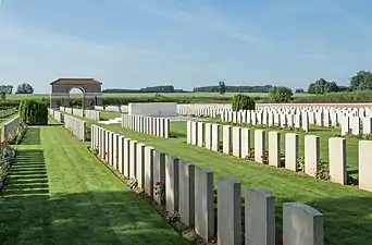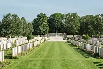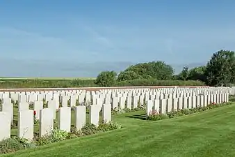 Après l'armistice, des corps sont amenés de cimetières provisoires environnants pour y être inhumés. Ce cimetière comporte aujourd'hui 2 107 tombes de soldats du Commonwealth de la Première Guerre mondiale, dix-huis soldats français et sept aviateurs de la Seconde Guerre mondiale, soit au total 3 132 sépultures dont 192 ne sont pas identifiées.