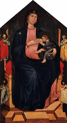 - Maestà de San Gaggio (vers 1300), 205 × 115 cm, Galleria Dell’Accademia, Firenze (inv. 1890 N.6115)