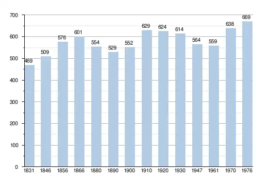 - Sources : INS, Rem. : 1831 jusqu'en 1970 = recensements, 1976 = nombre d'habitants au 31 décembre[2].