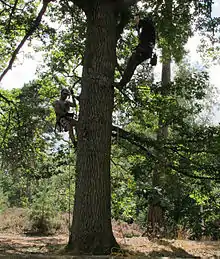 - la grimpe à l'anglaise : variante de la DdRT similaire dans sa méthode de fixation mais différente en raison de la technique d'ascension qui ne se pratique pas le long du rappel mais en posant les pieds sur le tronc au prix d'efforts importants sur les bras et les reins. Cette technique n'est pas valorisée car peut endommager l'écorce par piétinement ;